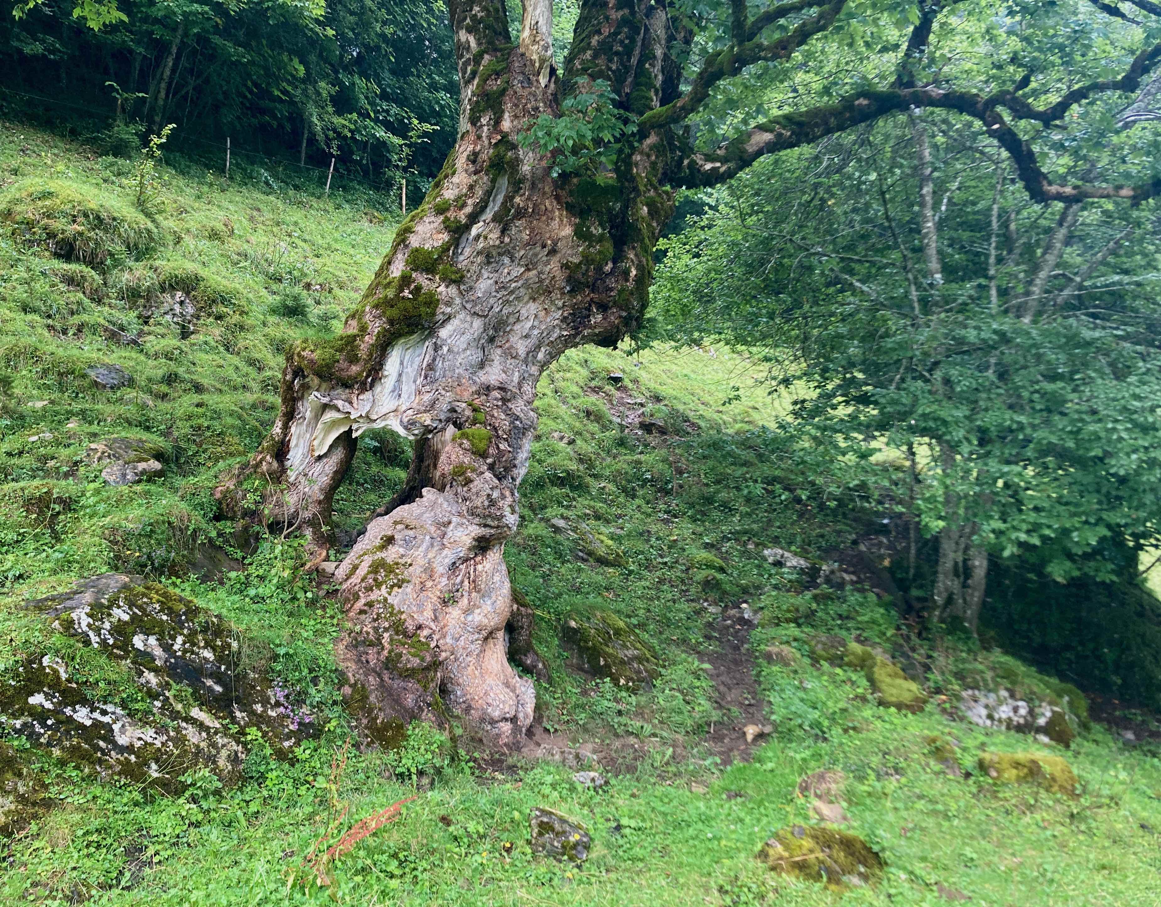 "Meine Aufzeichnung vom 28. Juli 2022: Schlafen unter einem Baum, der lebt und der mich beschützt. Mein Baum - Geborgenheit - Sein Dürfen - Schutz - Wunder - Ruhe und Stille - Stillende Ruhe" Gabriele aus Uettligen bei Bern